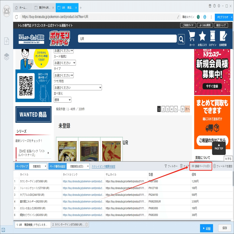 【ネット買取】トレカ!ドラゴンスターから商品の情報をスクレイピング.sst