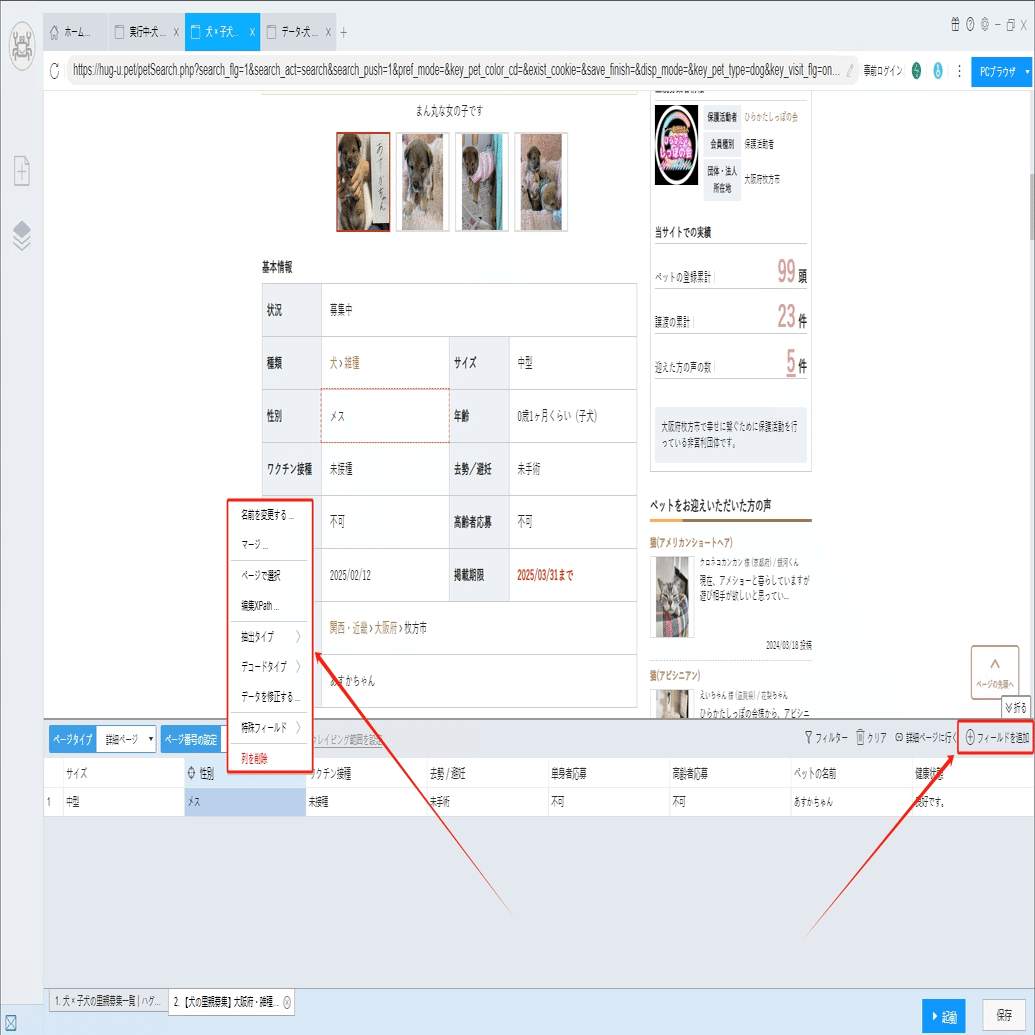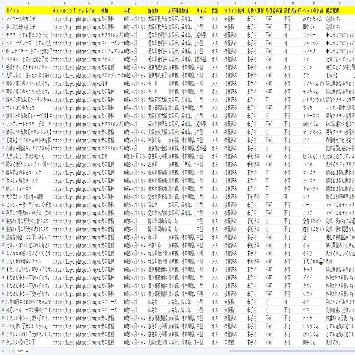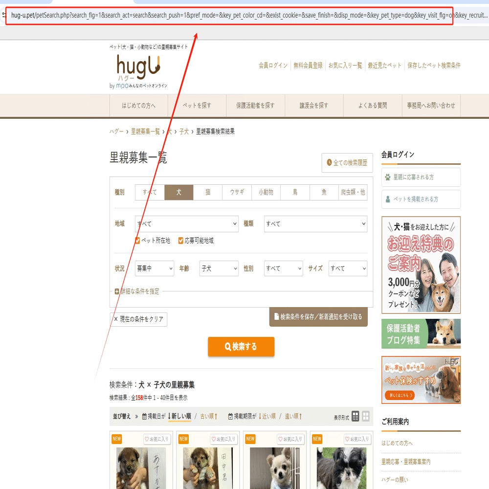 ペット・里親募集!ハグー(hugU)から子犬の情報をスクレイピングする