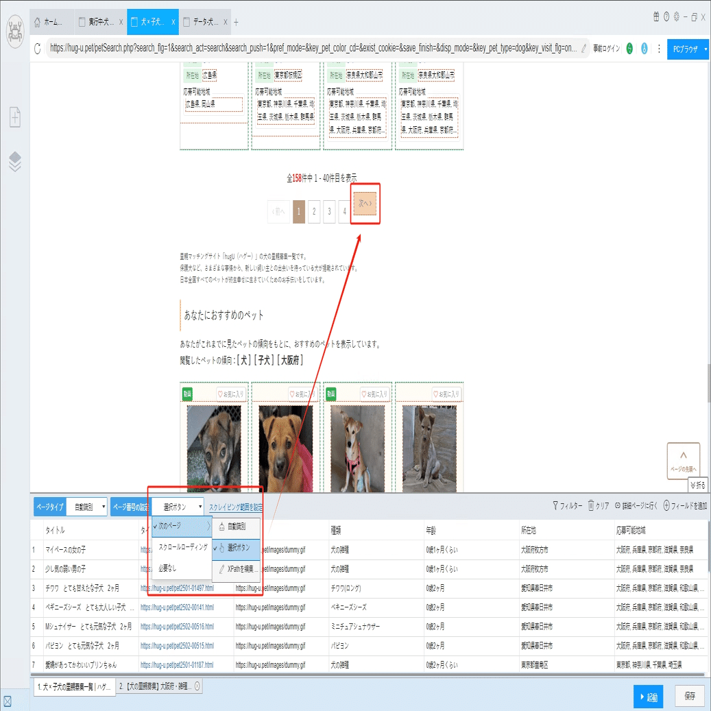 ScrapeStormは自動的にリスト要素とページボタンを識別できます。偶に誤差があれば、手動で選択してください。下記のチュートリアルも参照してください。