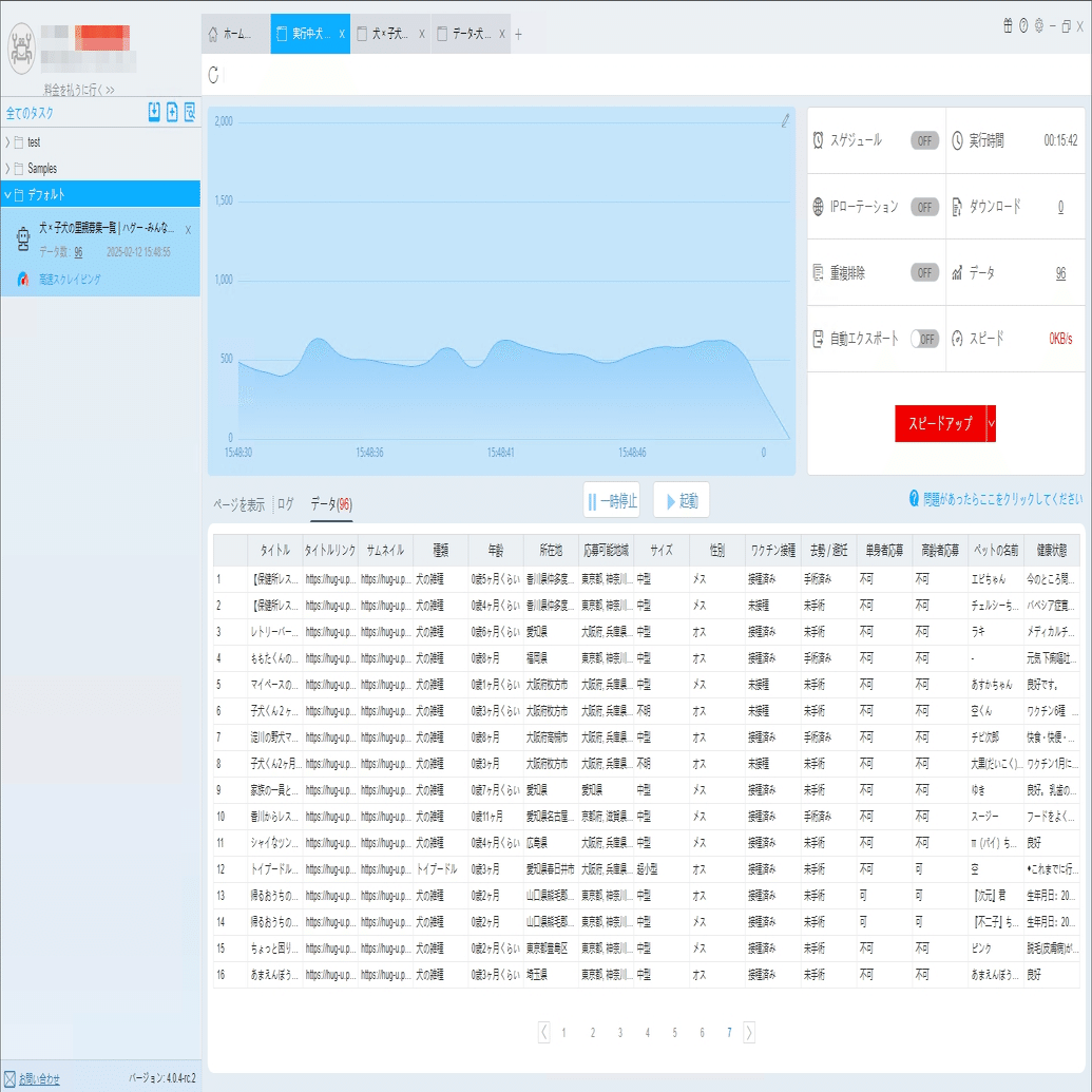 必要に応じて、スケジュール、アンチブロック、自動エクスポート、写真のダウンロード、スピードブーストを設定できます。サーバーに負荷しないように、遅延時間を設定してください。5秒以上を推薦します。スクレイピングタスクを配置する方法については、下記のチュートリアルをご参照ください。