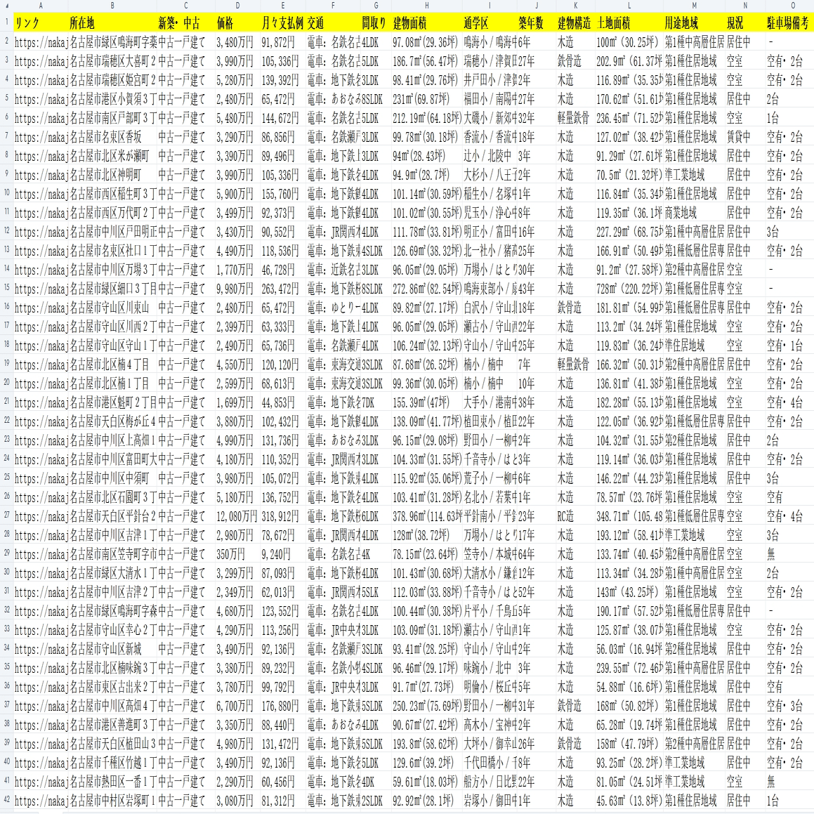 不動産・一戸建て!不動産Shopナカジツから物件の情報をスクレイピング