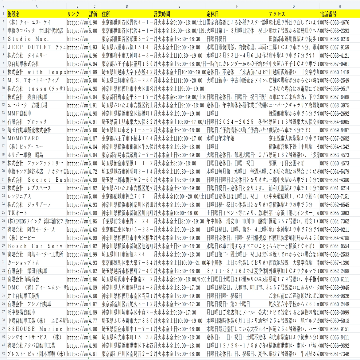 車検・点検・整備!グーネットから車検店舗の情報をスクレイピング
