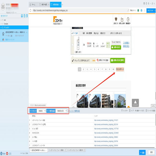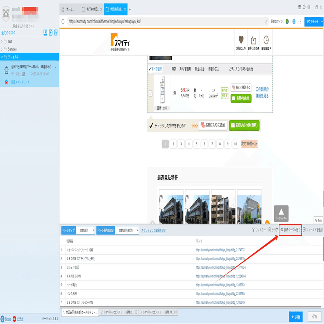ソフトウェアの「詳細ページに行く」機能を利用し、掲載している物件の情報を抽出します。