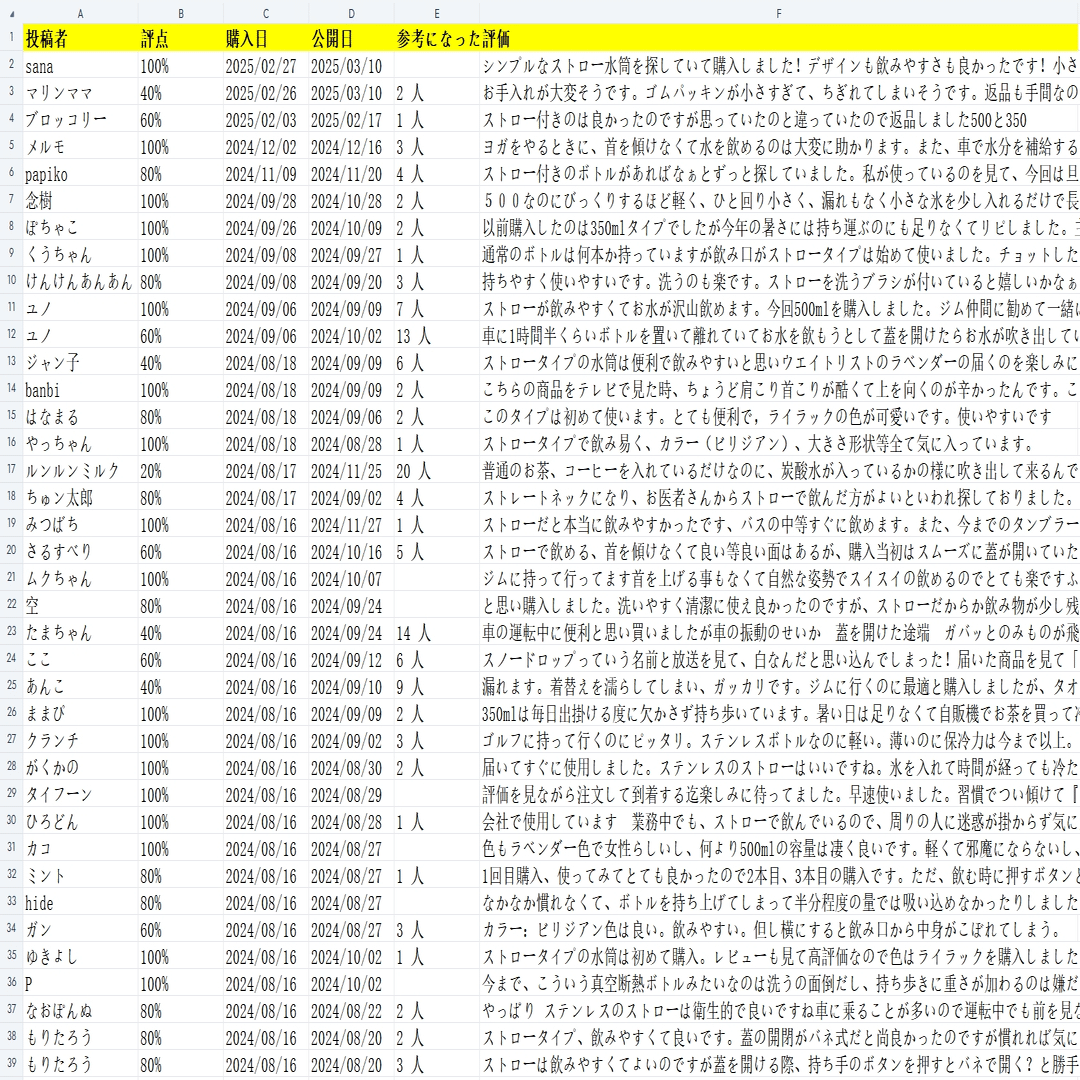 今回はある人気商品の評価一覧ページから評価を収得し、そのスクレイピング方法を紹介します。まず、URLをコピーしてください。