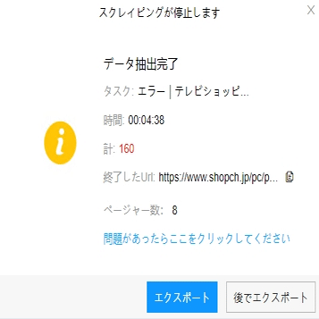 (2)しばらくすると、データがスクレイピングされる。