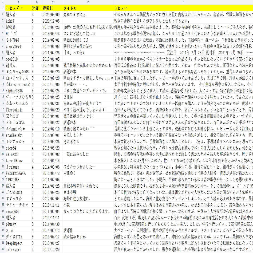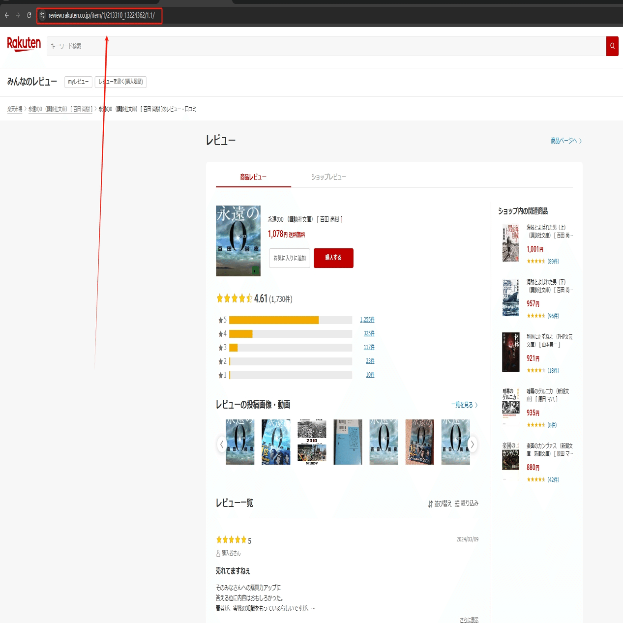 本・雑誌!楽天ブックスから書籍のレビューをスクレイピングする