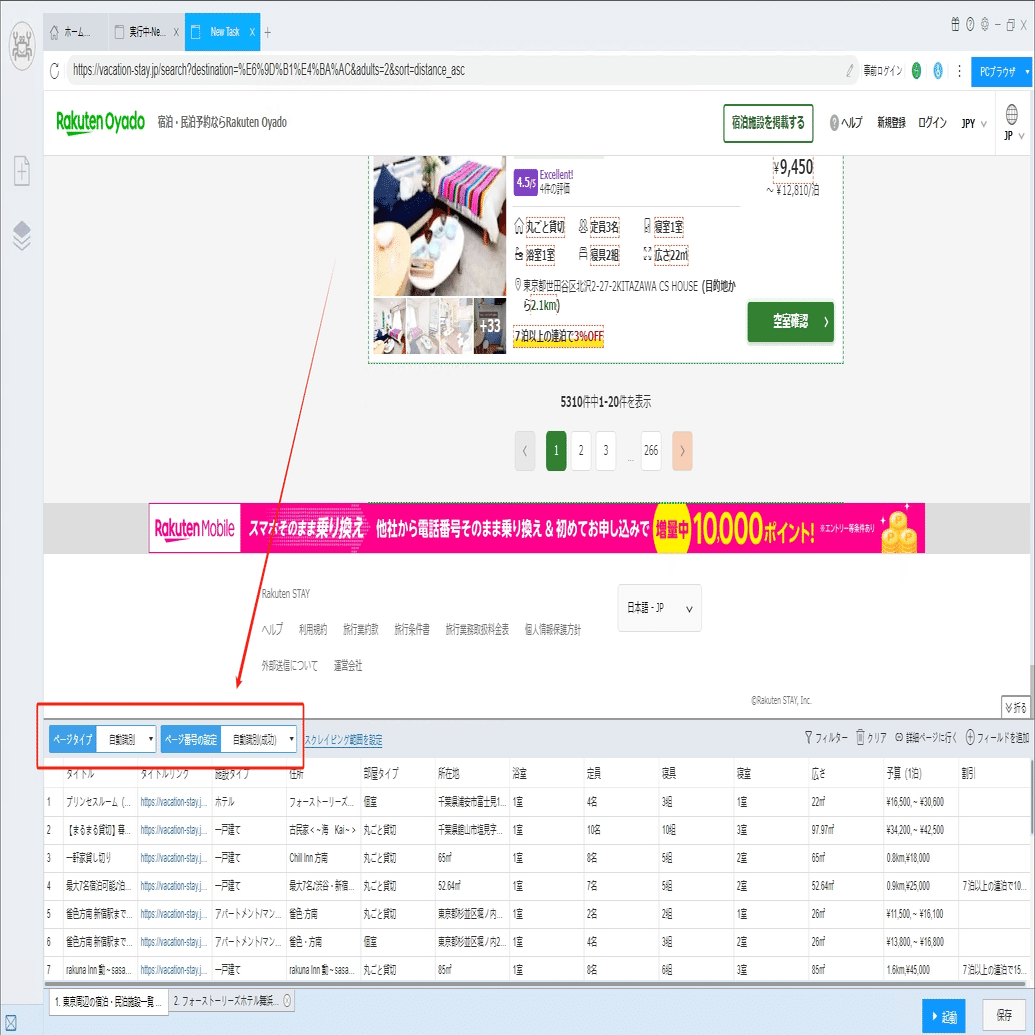 日本旅行・観光!楽天お宿から民泊施設の情報をスクレイピング.sst