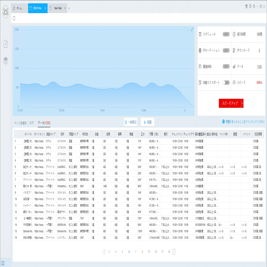 必要に応じて、スケジュール、アンチブロック、自動エクスポート、写真のダウンロード、スピードブーストを設定できます。サーバーに負荷しないように、遅延時間を設定してください。5秒以上を推薦します。スクレイピングタスクを配置する方法については、下記のチュートリアルをご参照ください。