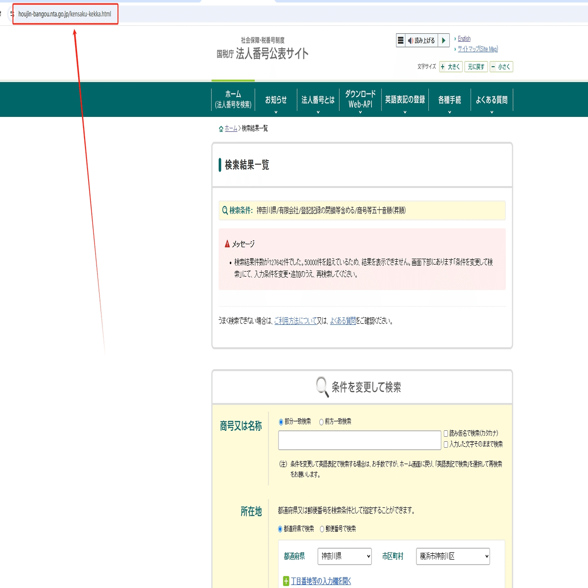 今回は検索結果一覧ページから企業の情報を収得し、そのスクレイピング方法を紹介します。まず、URLをコピーしてください。