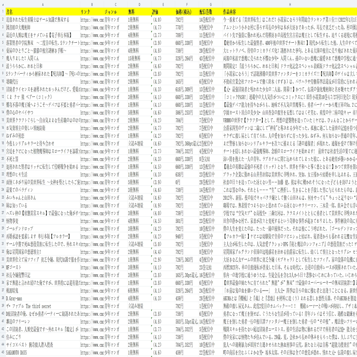 マンガ好き!コミックシーモア(cmoa)から漫画の情報をスクレイピング