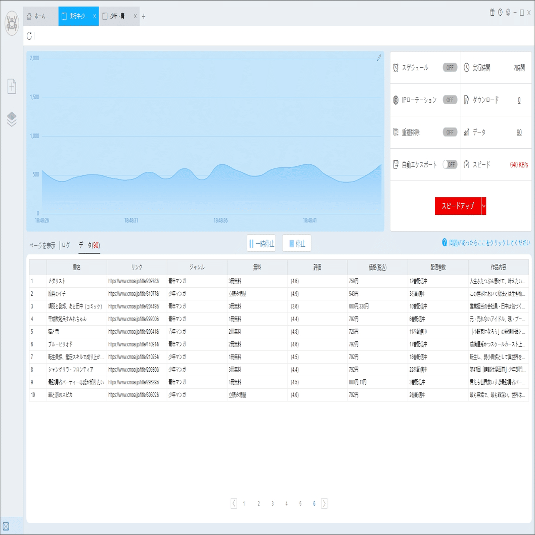(2)しばらくすると、データがスクレイピングされる。