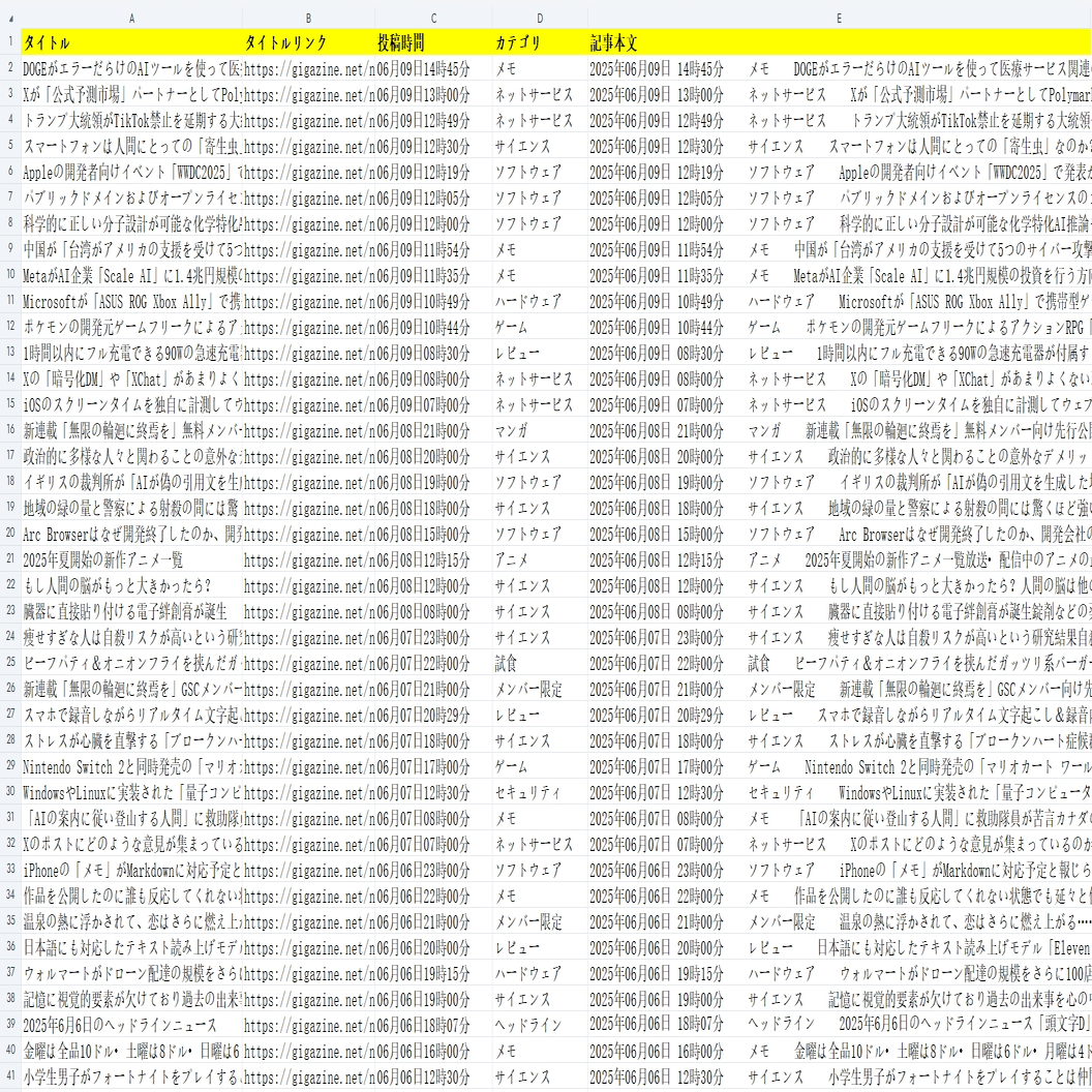 IT業界・メディア!Gigazineから記事をスクレイピングする