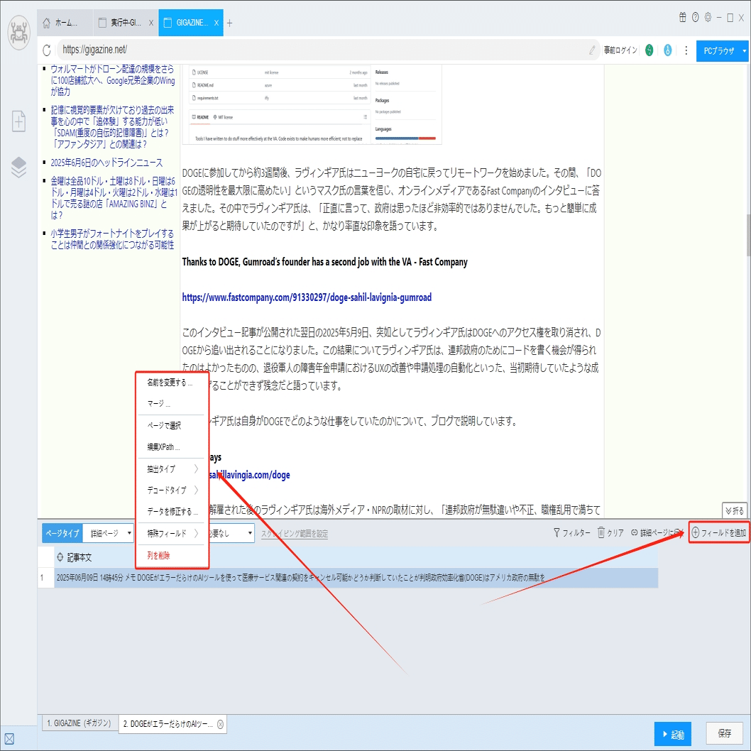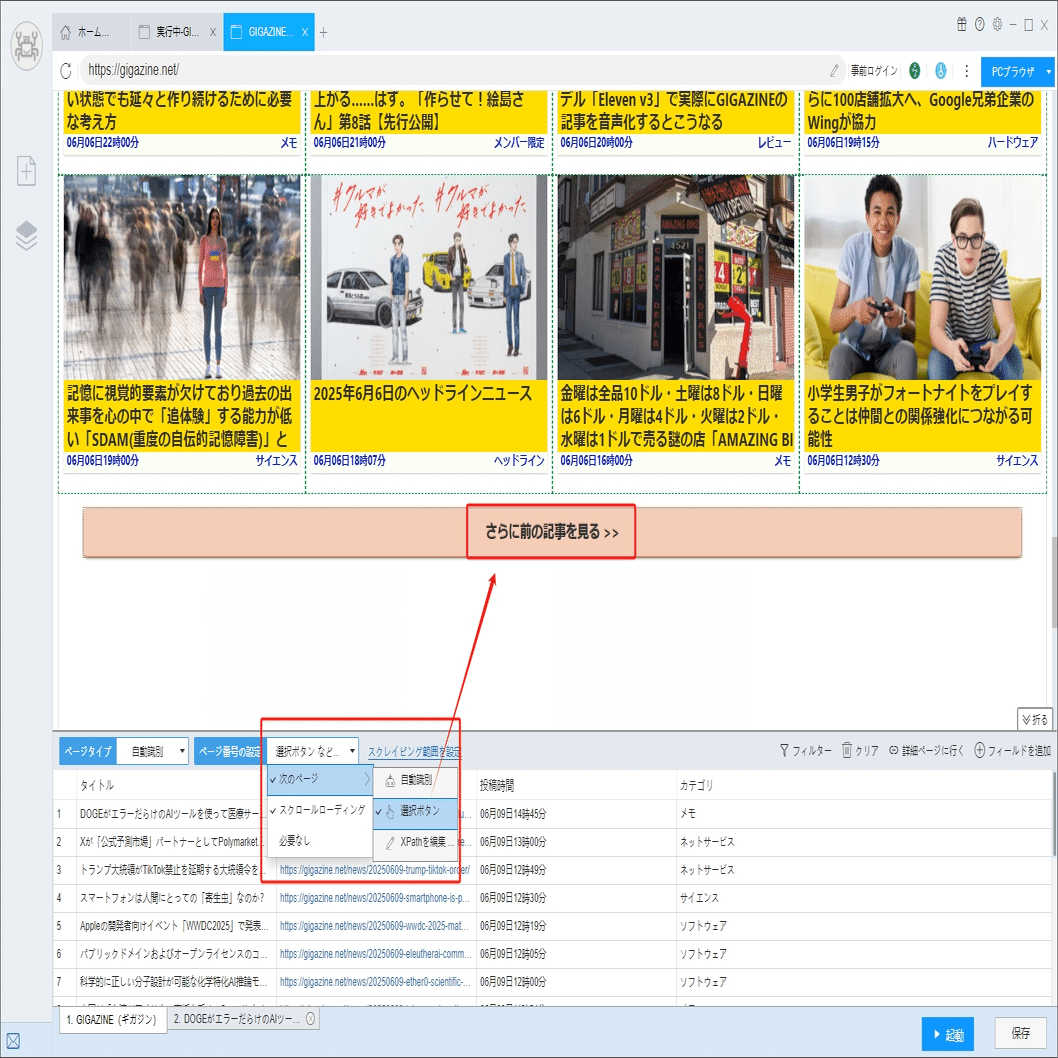 ソフトウェアの「詳細ページに行く」機能を利用し、記事の本文を抽出します。