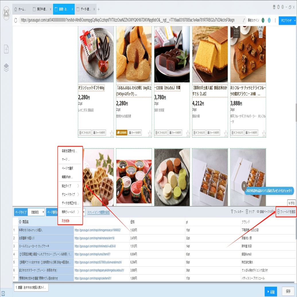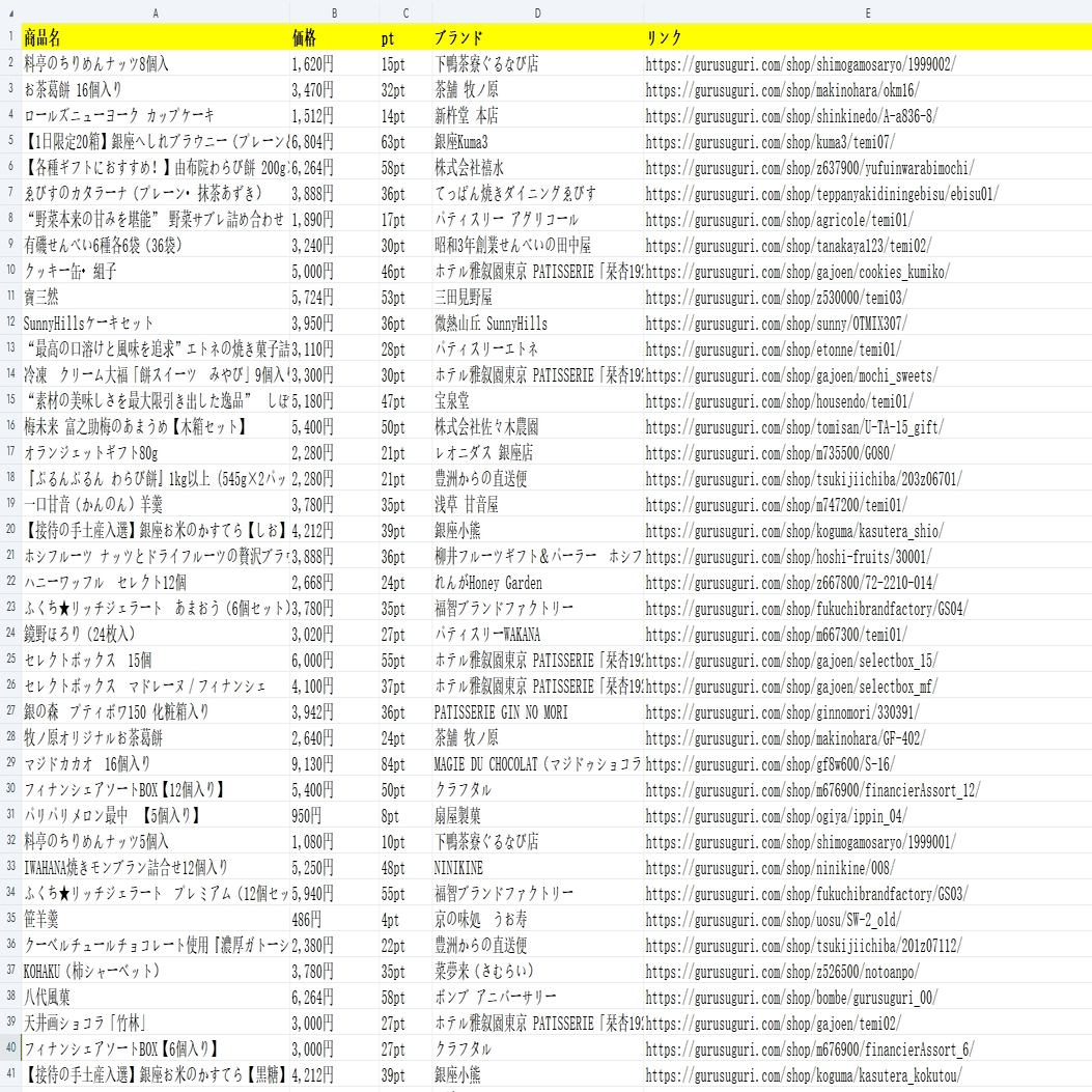 ご当地グルメ・特産品!ぐるすぐりから商品の情報をスクレイピング
