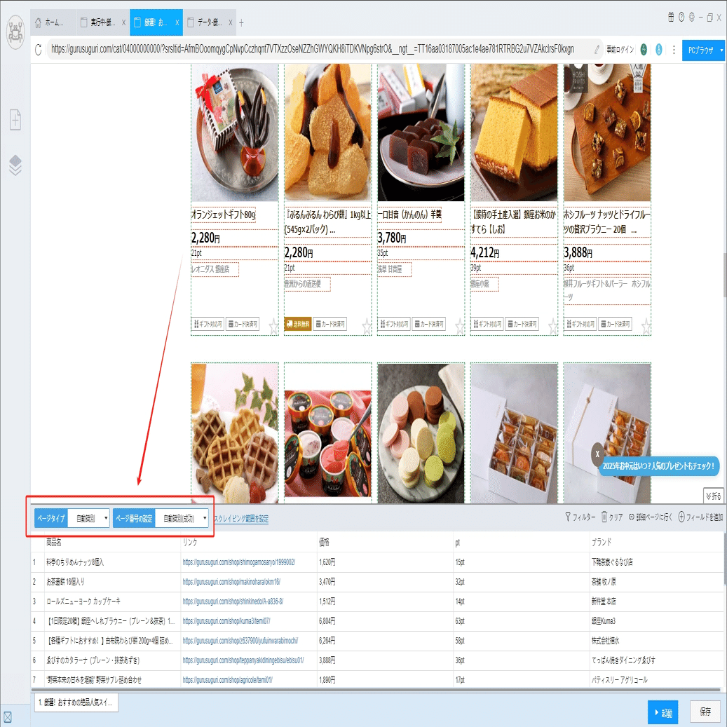 ScrapeStormは自動的にリスト要素とページボタンを識別できます。もし誤差があれば、手動で選択してください。下記のチュートリアルも参照してください。