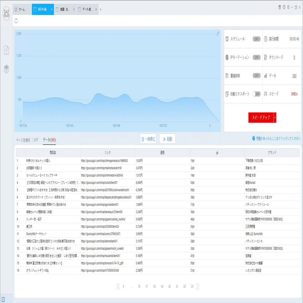 (2)しばらくすると、データがスクレイピングされる。
