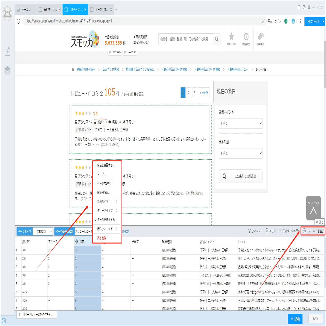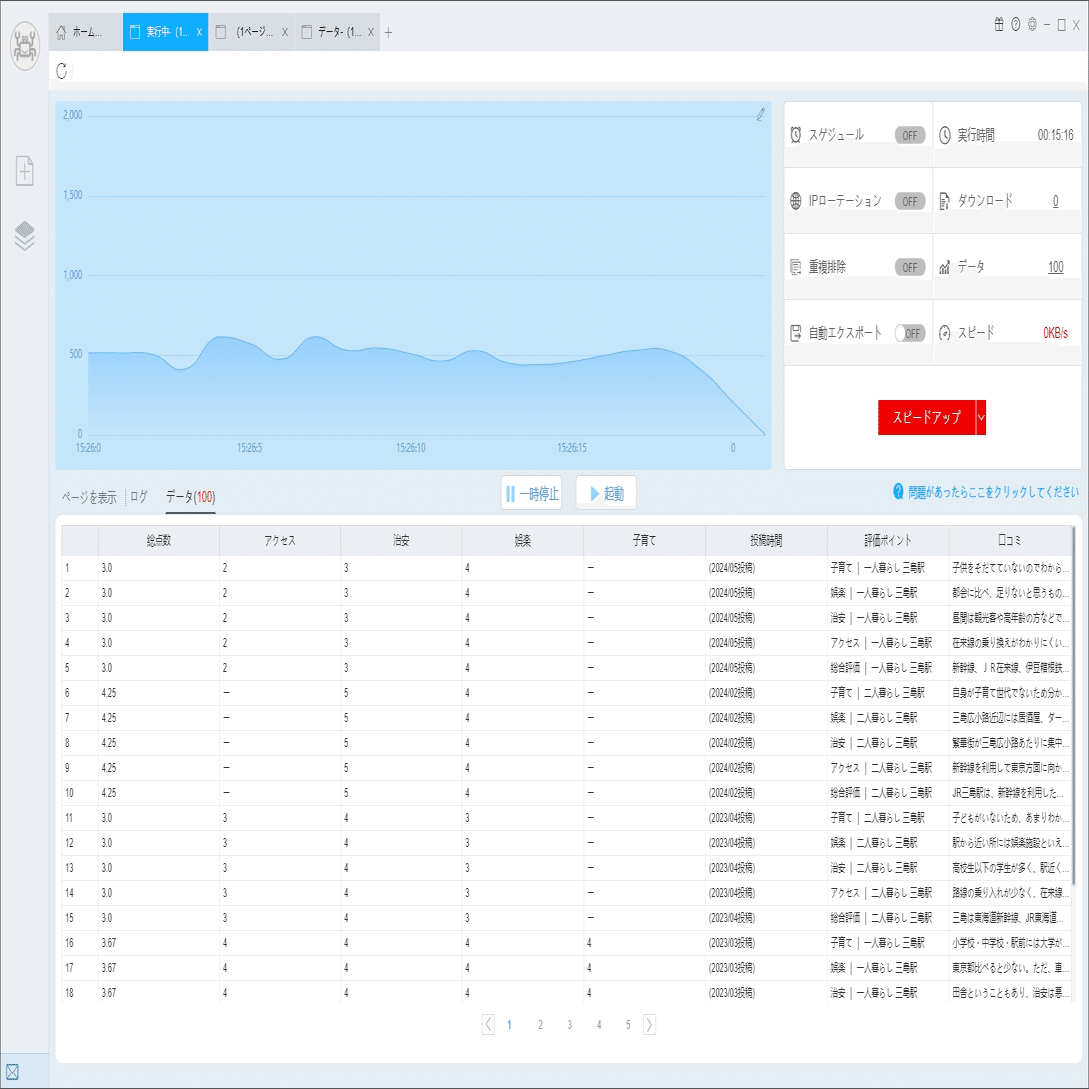(2)しばらくすると、データがスクレイピングされる。