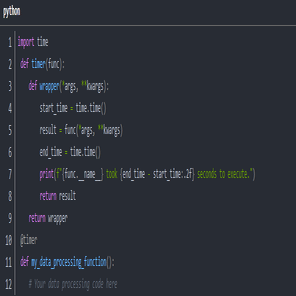 @timer 装飾子は特定の関数の実行時間を計測し、ボトルネックを素早く特定して改善するのに役立ちます。