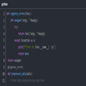 @suppress_errors 装飾子は例外をキャッチし、処理を継続できるようにします。