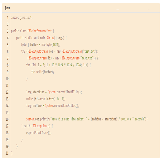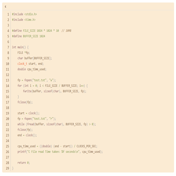 C言語はメモリを直接操作でき、オブジェクト管理のオーバーヘッドがないため高速である。JavaはJIT最適化があるものの、依然として一定の差が見られる。ファイル入出力